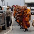 The trek has had its perils. In November outside Houston, the monks were walking on the side of a highway when their escort vehicle was hit by a truck. Two monks were injured; Venerable Maha Dam Phommasan had his leg amputated.