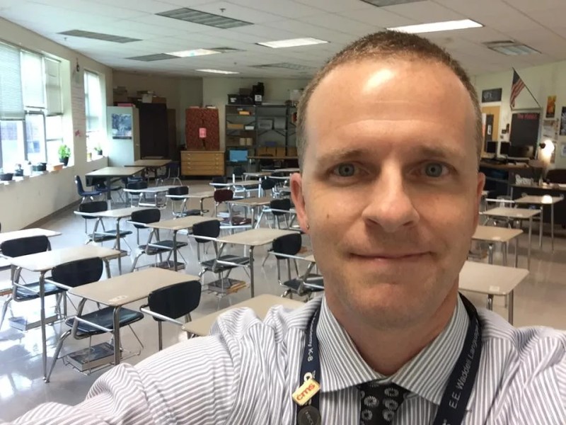 He began his career in the late 90s, teaching overseas with the Peace Corp. He worked in Albania and Turkey, which is where he met his wife. Those countries have their problems, but they treated educators like a profession to aspire to, he says. Coming back to teach in America was a shock.