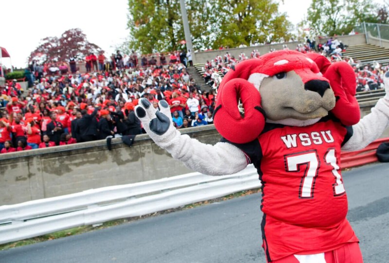 Winston-Salem State University’s marching band, nicknamed the “Red Sea of Sound,” pumps up the crowd before football and basketball games with its traditional anthem, “Get Up.”