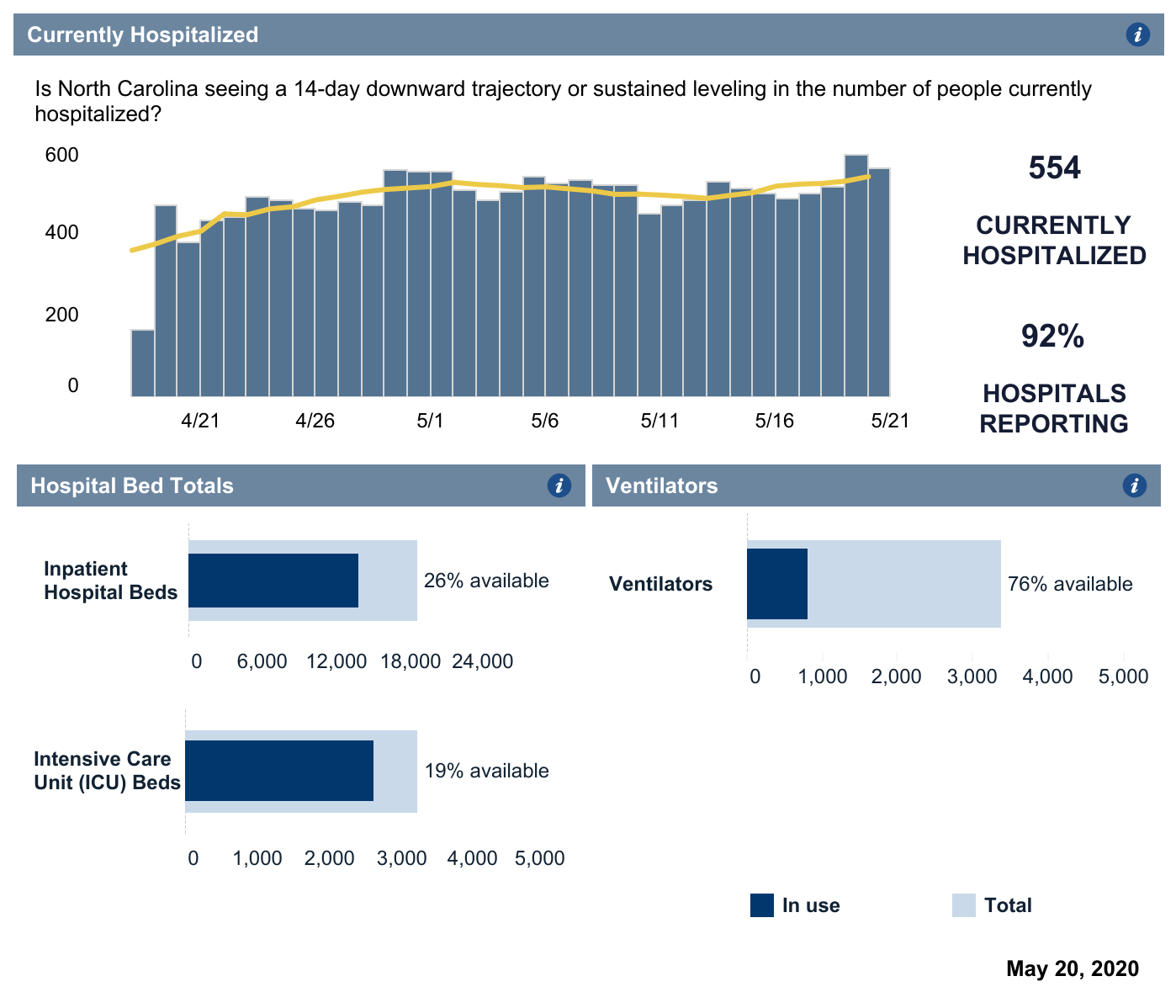 As of Wednesday, North Carolina has seen more than 20,000 cases, with more than 700 deaths and 554 patients currently hospitalized. Mandy Cohen, N.C. Secretary of Health and Human Services, said the overall number of cases is still going up, and over the weekend the state had its highest one-day total of confirmed infections at more than 800.