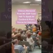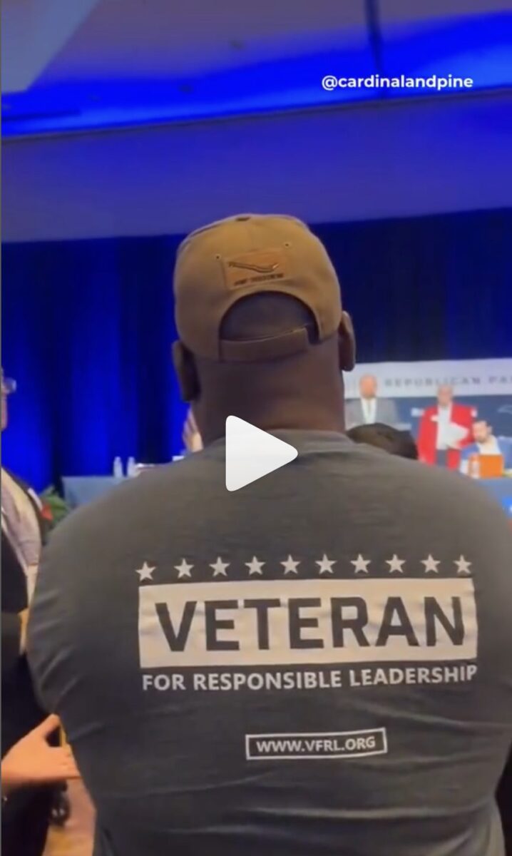 The coalition of veterans — including members of @common_defense and @vetsforresponsibleleadership — were quickly ushered out of the event, though they received a guarantee that their letter would be delivered to the chair of the Republican National Committee.