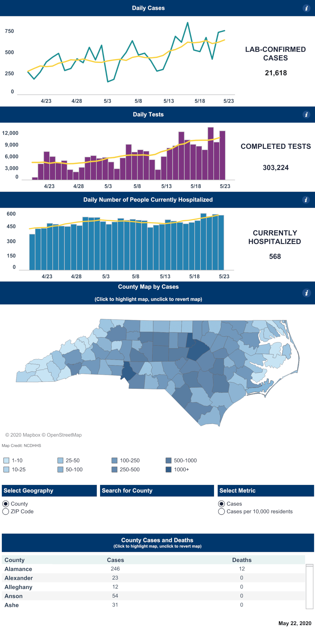 But with NC expected to enter into Phase 2 of easing restrictions at 5 p.m. today, some have noted a surge in new cases, coinciding with a spike in testing across the state.