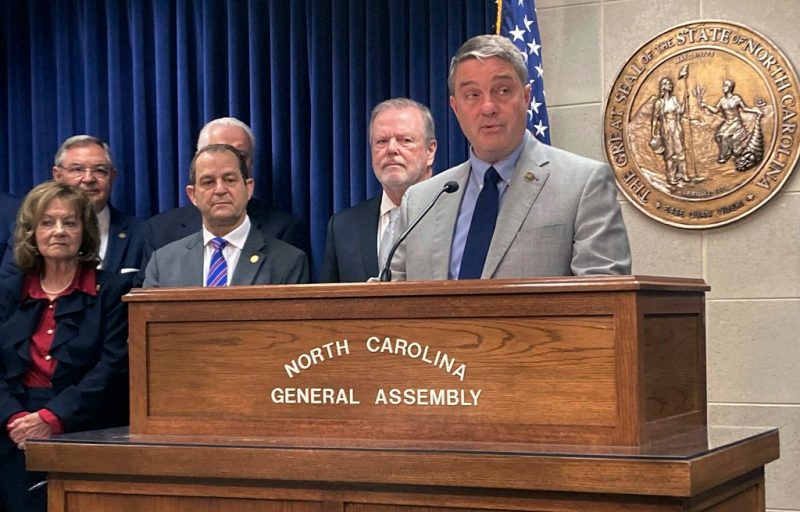 FILE – North Carolina Sen. Warren Daniel, R-Burke, speaks at a news conference, June 12, 2023, in Raleigh, N.C. Daniel was a primary sponsor of a pair of bills addressing voting and election administration in North Carolina that became law Tuesday, Oct. 10, after the General Assembly overrode Democratic Gov. Roy Cooper's vetoes. (AP Photo/Gary D. Robertson, File)
