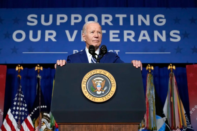 FILE – President Joe Biden speaks at the George E. Wahlen Department of Veterans Affairs Medical Center, Aug. 10, 2023, in Salt Lake City. Recent statements by Republican presidential candidate former President Donald Trump have fueled Democrats' sense that there's an opening among voters with strong military ties, and progressive veterans' organizations are working to bridge the gap with what has long been a reliably red constituency. (AP Photo/Alex Brandon, File)