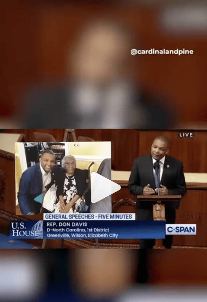 With the State of the Union address tonight, Rep. Don Davis (D-NC) took a moment to talk about his special guest for the event — 109-year-old Cassie Smith of Battleboro, who Davis describes as a “living and walking symbol of our democracy.”