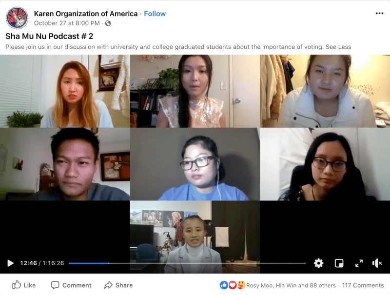 Karen (Burmese) youth people people created an online forum to talk about how and why to vote in 2020. (Screenshot via Facebook.)