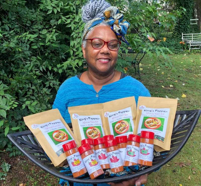 Gail Jennings founded King’s Pepper in 2018. She’s created an award-winning dry spice blend, made from a centuries-old West African recipe. “It’s the key ingredient in our African Taco kit which uses black-eyed peas to make vegan patties,” Jennings says. “I’m very proud of the 2022 Scovie Award we won for it. It’s a sweet reward for hanging on through the ups and downs.”