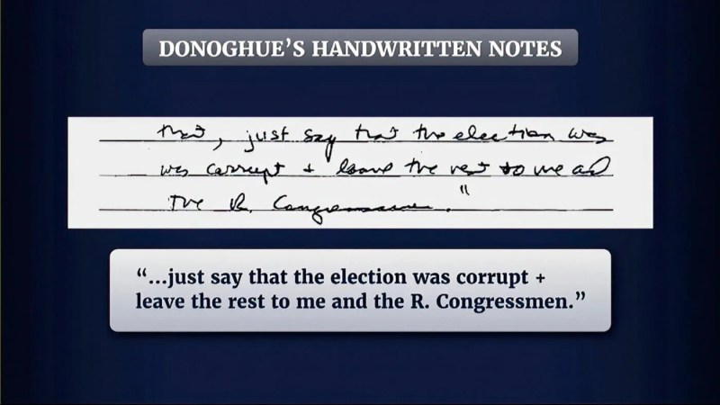 “Just say that the election was corrupt and leave the rest to me and the [Republican] congressmen,” former acting deputy attorney general Richard Donoghue recalled the former president saying during a Dec. 27, 2020, meeting.