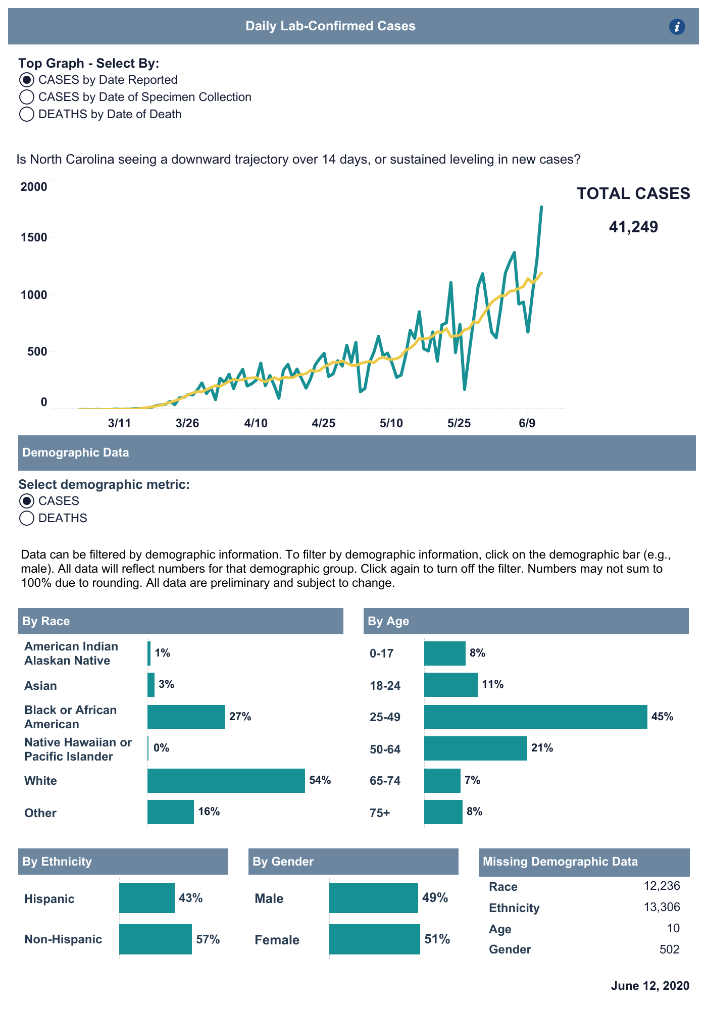 Cooper addressed reporters with COVID-19 infections spiking in the state. The state confirmed 1,768 new cases Friday. New cases have been on a worryingly steep incline since mid-May, with a confirmed 41,239 total infections. The virus has killed 1,092.
