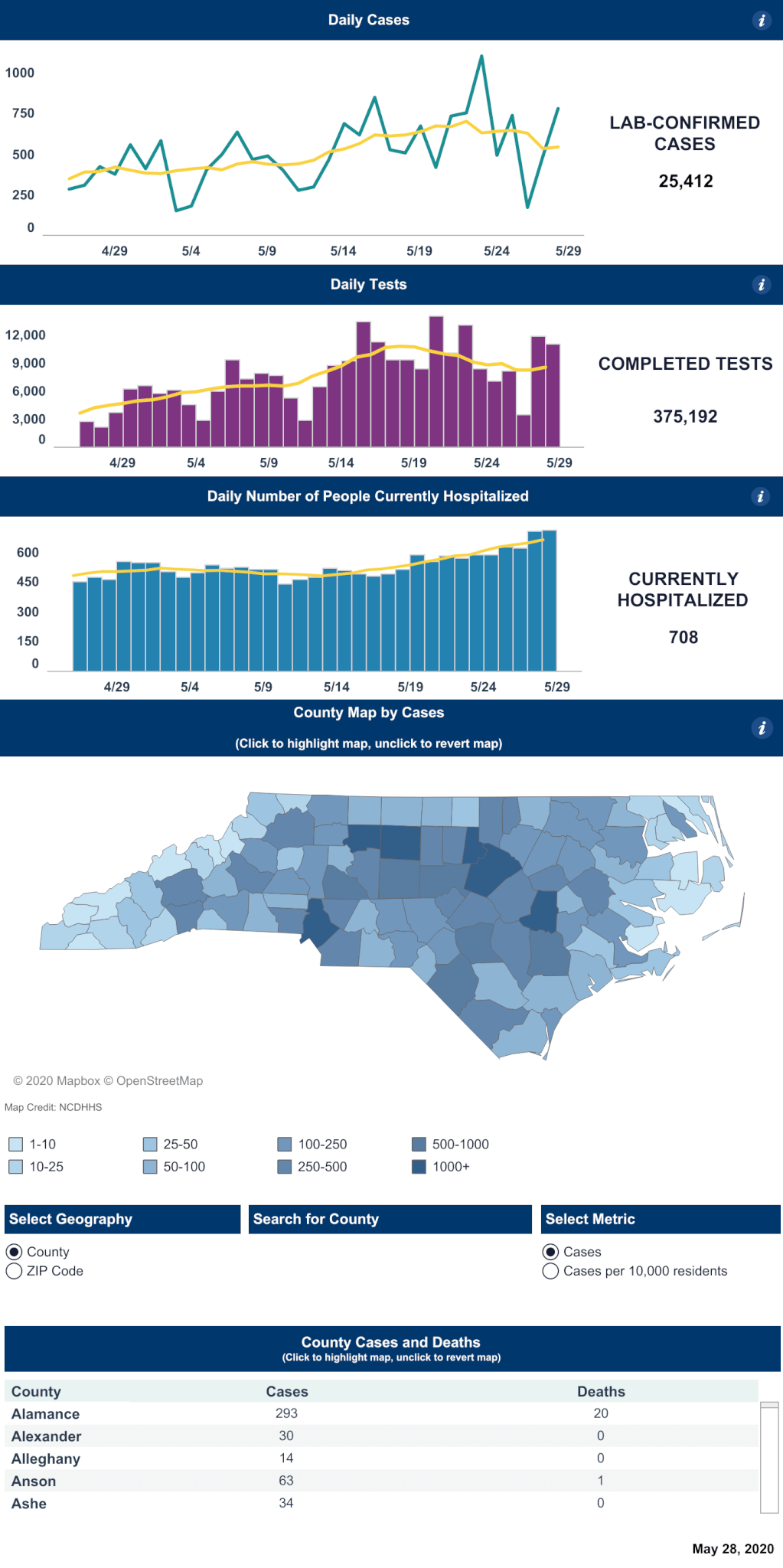 NC’s spike in new cases, which totaled 25,412 cases Thursday morning, has been accompanied by an increase in new testing. Indeed, CVS announced 55 new drive-thru testing sites across the state Thursday as private labs ramp up their activity.