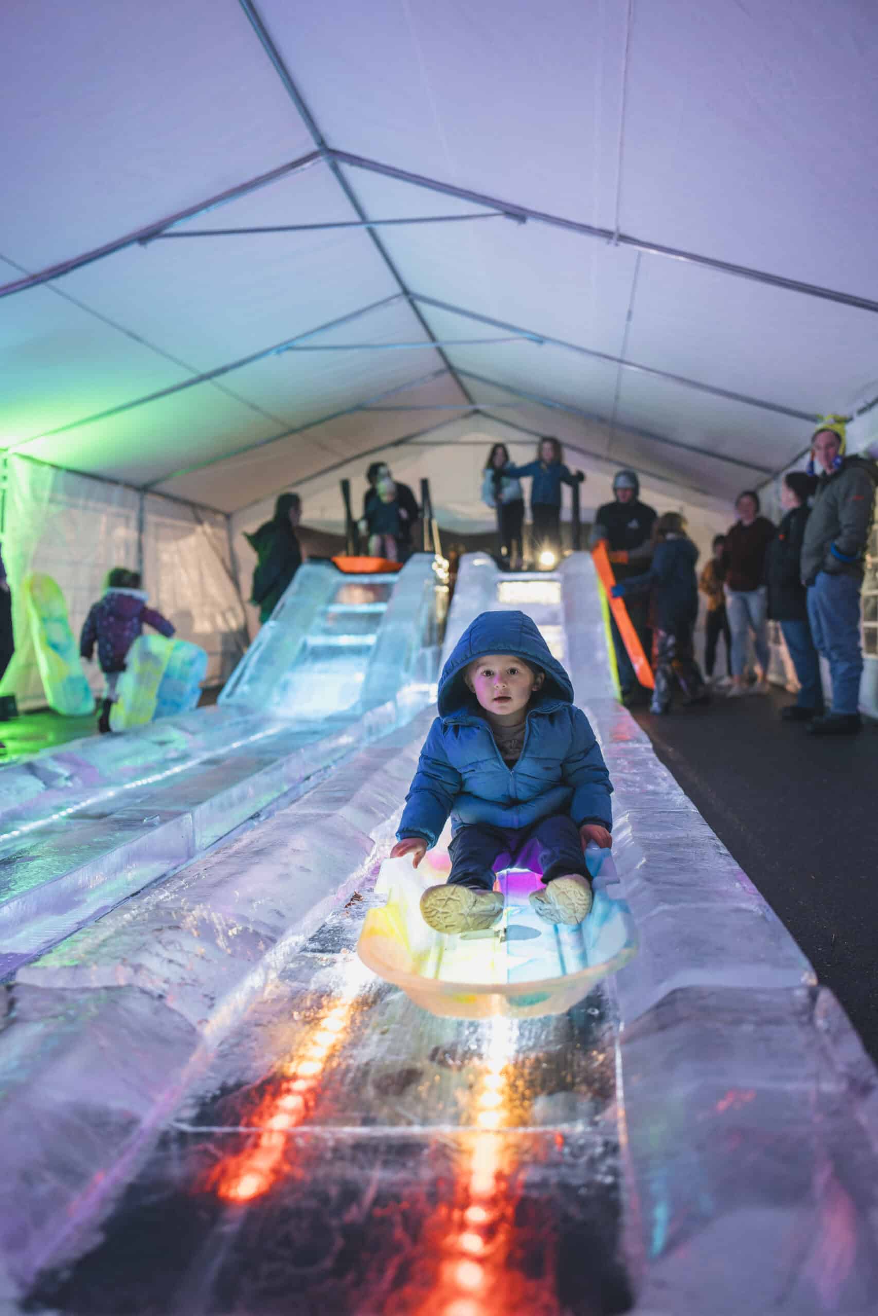 Ride down the ice slide at the Ice Extravaganza in Maggie Valley. (Visit Haywood)