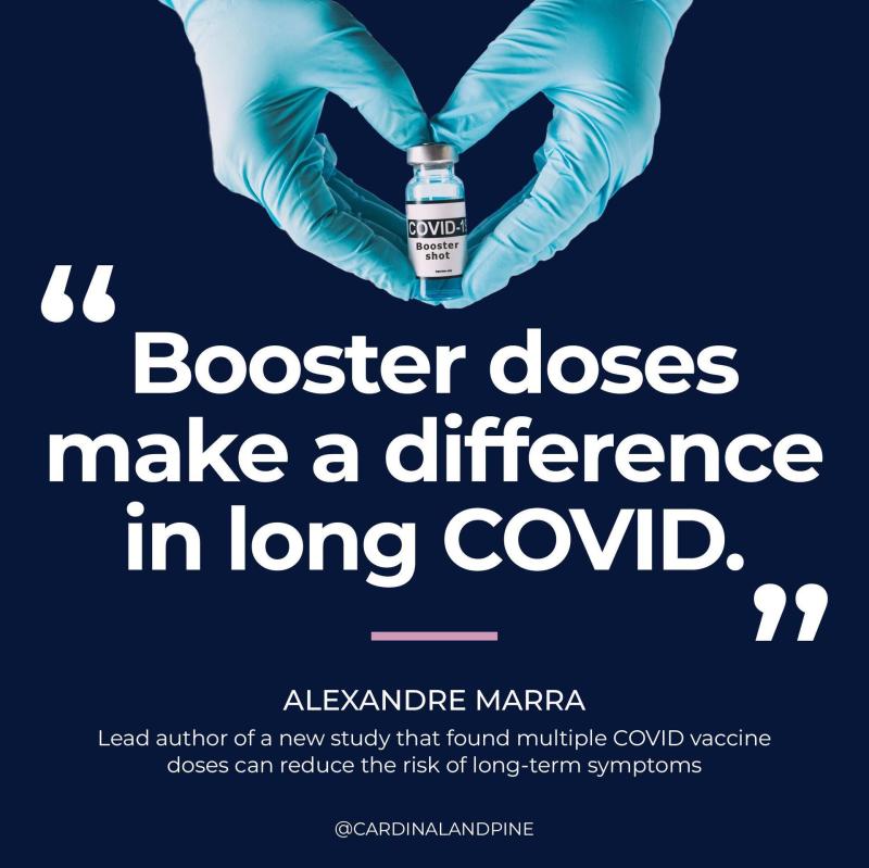 But this isn’t 2020. We have a vaccine. It’s effective and safe. And new studies show the vaccine to be a remarkable protection against long COVID. Many folks have been vaccinated before, but haven’t gotten the latest vaccines, which arrived in the fall. Click the graphic below or click here to find a vaccine in NC.