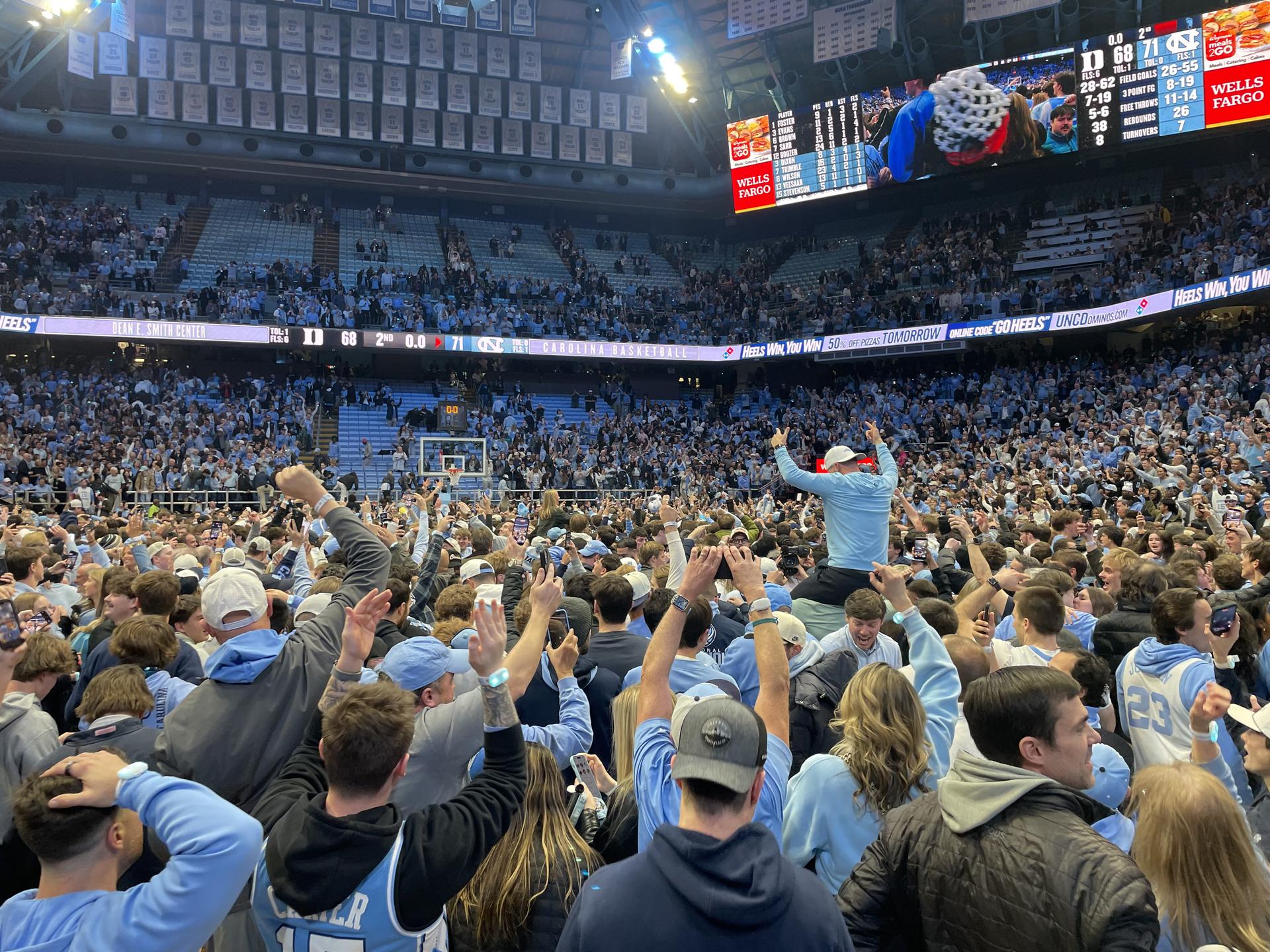 Cardinal & Pine reader Heather Sanford clearly had some choice seats at the UNC-Duke game Saturday, an instant classic that ended with a buzzer-beating three-pointer.