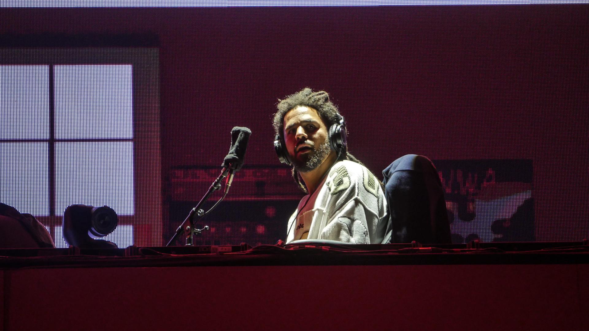 Headliner J. Cole performs on the second day of the fifth and final Dreamville Festival, which drew thousands of fans to Dorothea Dix Park in Raleigh, North Carolina, on Sunday, April 6, 2025. (USA Today via Reuters)