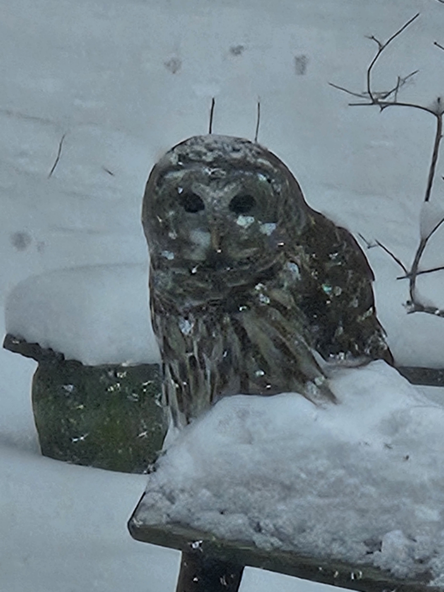 Cardinal & Pine reader Don Stewart sent us this photo of an owl braving cold temperatures.